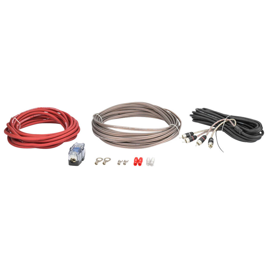 Kit 40A con tutto l'occorrente per la realizzazione di un impianto HI-FI dalle prestazioni eccellenti. Cavi realizzati con una lega ad alta conduttività per esaltare il potenziale dell'impianto e rifiniti con una guaina soft-touch estremamente flessibile per agevolare l'installazione. Il kit include: 1 cavo rosso di alimentazione positivo sezione 8,5mm2 da 5,5m; 1 cavo altoparlanti sezione 2x2mm2 da 10m; 1 cavo nero di alimentazione negativo sezione 8,5mm2 da 70cm; 1 cavo audio RCA doppia schermatura bilanciato diam. 6mm da 5m; 1 fusibile AFC 60A; 1 portafusibile AFC nickel; 4 terminali
