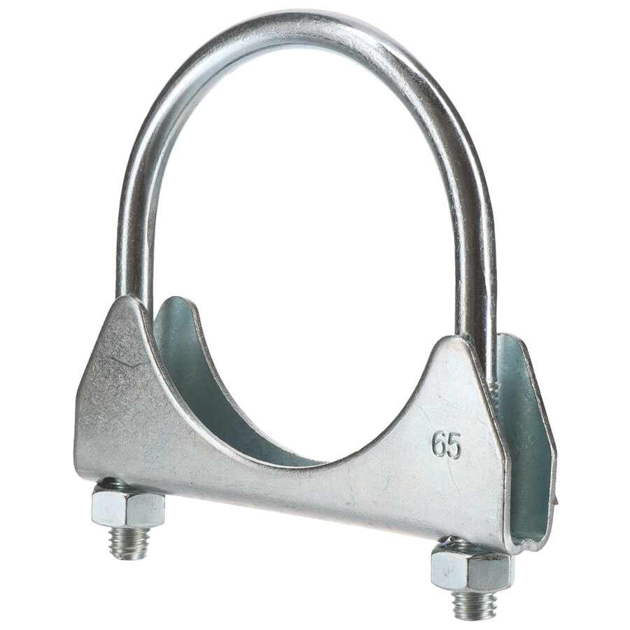 Fascetta a cavallotto in acciaio zincato diam. 65mm. Filettatura M8. Tipo staffa a U. Tenuta perfetta garantita: il collare a U distribuisce uniformemente la pressione sulla linea di scarico