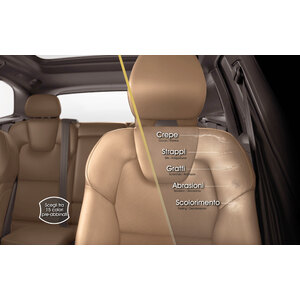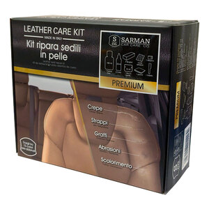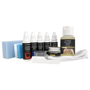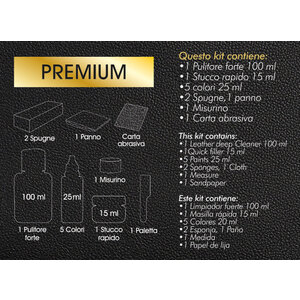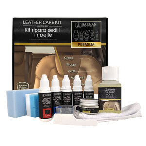 Kit fai da te per la riparazione della pelle, studiato appositamente per ricolorare parti in pelle sbiadite dal tempo e per riparare piccoli danni e imperfezioni superficiali come graffi, abrasioni e piccole screpolature. Questo kit contiene prodotti 100% realizzati in Italia. Con questo kit è possibile intervenire su pelle pigmentata, altri materiali flessibili come pelle sintetica, pelle vegana, sky nautico (non adatto per pelli scamosciate o nabuk). Il kit include: 1x detergente 100ml, detergente delicato a base acqua che pulisce in profondità ed esalta la naturale bellezza degli interni in pelle delle auto. Rimuove delicatamente lo sporco e la sporcizia per creare un aspetto ringiovanito per sedili, volanti e altre superfici in pelle. Ideale per l'uso su tutta la pelle automobilistica e sul vinile; 1x riparatore 15ml; 5x colori 25ml; 1x spugna doppia azione; 1x spugna alta densità; 1x guanto in microfibra; 1x carta abrasiva 500 su spugna