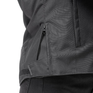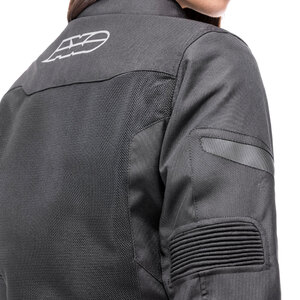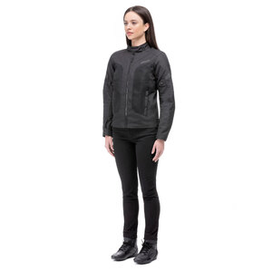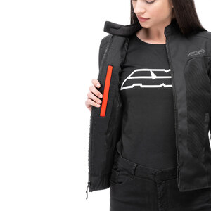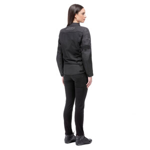 Giacca da donna in tessuto, con ampie aree di ventilazione. Giacca esterna in tessuto armaturato e pannelli in tessuto traforato. Collo con margine in neoprene, interno in microfibra e chiusura frontale con velcro. Chiusura frontale con zip. 2 Tasche al fondo con chiusura zip. Multi regolazioni su maniche, fondo e polsi. Inserti elastici su punto gomito. Dettagli riflettenti su maniche e busto. Inserti "carbon look" su punto spalla. Interno foderato in tessuto traspirante. 2 Tasche interne con velcro. Tasca interna impermeabile con zip. Prodotto Certificato secondo normativa EN17092:2020 Livello: Classe A. Protezioni EN1621-1 di Livello 1 Type A su spalle e gomiti. Predisposizione paraschiena EN1621-2 liv. 2 (paraschiena non incluso: M 1903889 adatto a tutte le taglie)
