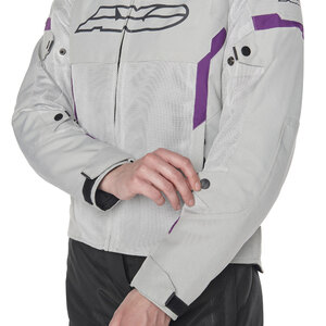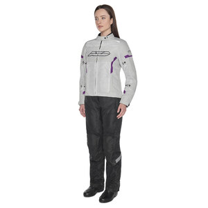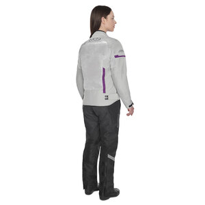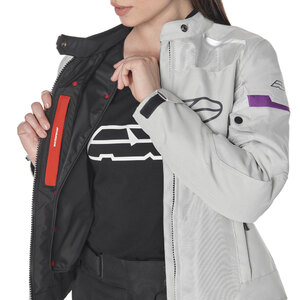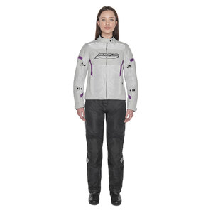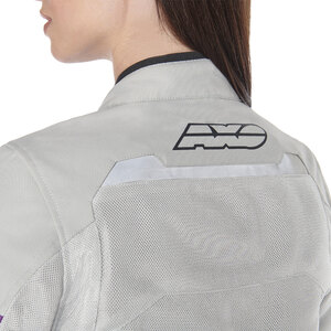 Giacca da donna in tessuto, ventilata, con interno removibile antivento. Giacca esterna in tessuto armaturato e pannelli in tessuto traforato. Collo con margine in neoprene, interno in microfibra e chiusura frontale con bottone a pressione. Chiusura frontale con zip. 2 tasche al fondo con chiusura zip. Multi regolazioni su maniche, fondo e polsi. Ampie aree di ventilazione su torace, maniche e schiena. Dettagli riflettenti su spalle e schiena. Interno foderato in tessuto traspirante. 2 tasche interne con velcro. Tasca interna impermeabile con zip. Zip di connessione su punto vita interno per collegare la giacca ai pantaloni della collezione AXO. Interno removibile e ripiegabile in tessuto antivento. Certificato secondo normativa EN17092:2020 - Livello: Classe A. Protezioni EN1621-1 di Livello 1 Type A su spalle e gomiti. Predisposizione paraschiena EN1621-2 liv. 2 (paraschiena non incluso: M 1903889 adatto a tutte le taglie)