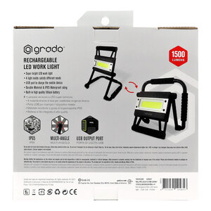 Lampada da lavoro ricaricabile a Led super luminosa. 4 modalità diverse di luce per soddisfare esigenze di lavoro diverse. Porta USB per ricaricare il dispositivo. IP65. Multi angolo. 1500lm. 6000°K. USB Output: 5V/1A. Materiale: ABS + metallo. Batteria ricaricabile integrata: 3,7V 4400mAh lithium