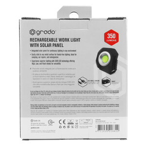 Luce da lavoro ricaricabile con pannello solare. Ruotabile di 360°. Pannello solare integrato per un'illuminazione continua in qualsiasi ambiente. Si attacca facilmente a qualsiasi superficie metallica per un'illuminazione a mani libere, ideale per il campeggio, le riparazioni in auto e in caso di emergenza. Illuminazione superiore grazie alla tecnologia COB LED che offre modalità alta, bassa e flash per una maggiore versatilità. IP44. Materiale ABS. Batteria 1200mAh. Tempo di ricarica: USB 2/3 ore, solare 8 ore. Tempo di lavoro: 6 ore. Cavo di ricarica USB Type C incluso. 350lm