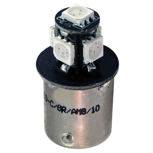Lampadina Multi-Chip LED SMD CANBUS per evitare la spia accesa del quadro o il lampeggio rapido delle frecce. 5 led. Progettate per scooter e moto. Resistente alle vibrazioni. Vedere, essere visti, essere di tendenza! Bryte LED è la linea ideale con una grande luminosità per incrementare visibilità e stile. Speciale lampadina a led con integrata una resistenza che nel 99% dei casi risolve il problema della spia accesa nel cruscotto o problemi di lampeggiamento troppo veloce alle frecce. E' progettata per durare alle vibrazioni o ai colpi e si accende immediatamente. Facile da installare e non richiede ulteriori modifiche. Nel caso di mancata accensione dopo l'installazione, provare ad invertire la polarità girando la lampadina