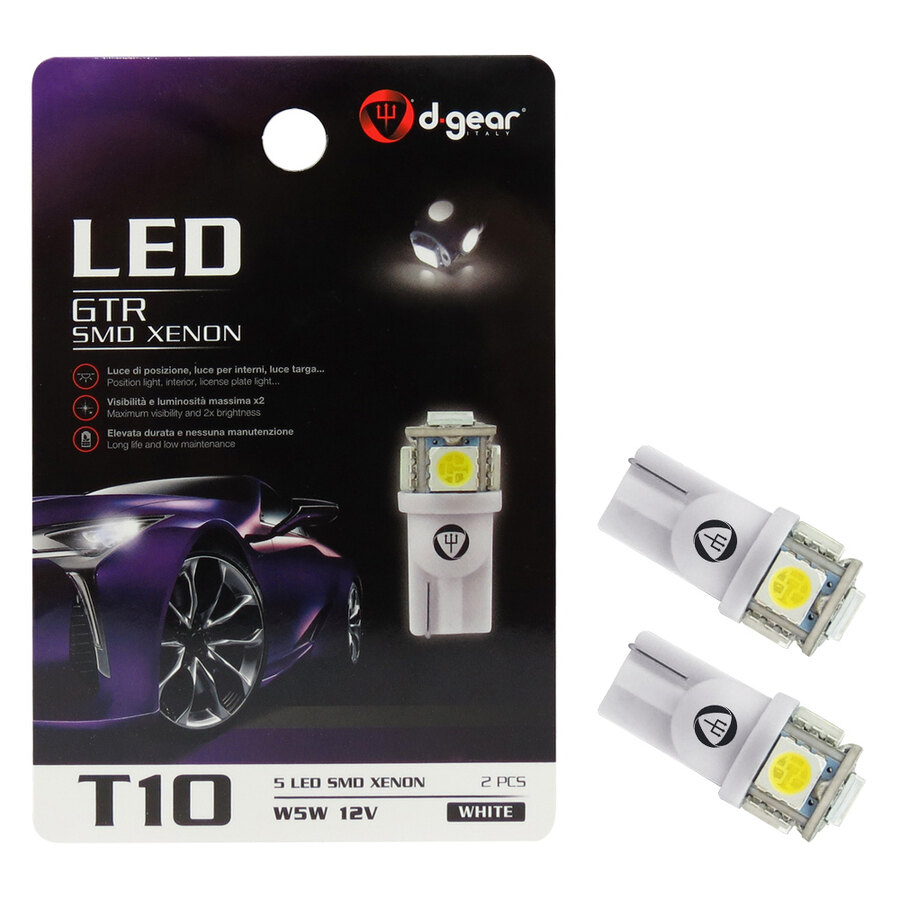 Con 5 led è ideale per luce posizioni, luci interne e targa. Leds SMD a lunga durata, testati contro colpi e vibrazioni, immediata accensione / spegnimento. Luce pura monocolore a basso consumo, praticamente indistruttibili. Massima visibilità e luminosità. 2 volte in più di luce rispetto ad una lampadina standard