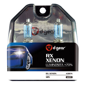 Le lampadine RX Xenon di D-gear producono un fascio 70% più luminoso rispetto alle tradizionali alogene. Grazie alla nuova ed innovativa tecnologia Xenon Starlights, le lampadine RX rappresentano il miglior mix di luminosità, intensità, qualità e durata, disponibili anche con una leggera frequenza azzurra. Le lampadine sono fornite in coppia e sono omologate E13 - ECE R37