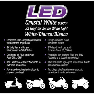 Led Headlight Conversion Kit. Crystal White. 3 volte più luminosa e più duratura: fino a 30.000 ore. Design compatto e con luminosità elevata. Progettata con funzione Plug and Play. Accensione e spegnimento veloci! IP68 Resistente agli agenti atmosferici. Adatto alle situazioni estreme! Tecnologia di raffreddamento avanzato per evitare il surriscaldamento. Questa lampadina a LED funziona con la maggior parte dei veicoli senza errori, tuttavia alcuni veicoli possono richiedere di installare il decoder o una resistenza per evitare l'errore di codifica o di lampeggiamento