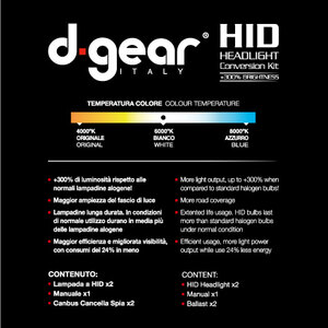 Il kit CANBUS HID XENON fornisce ben oltre il 300% in più di luminosità rispetto alle normali lampadine alogene. Grazie all'esclusiva tecnologia SRT (Solid Reflector Technology), il kit D-Gear garantisce una luce intensa simile a quella diurna, evidenziando meglio i margini della strada e la segnaletica stradale. Maggior ampiezza del fascio di luce. Lampadine lunga durata. Maggior efficienza e migliorata visibilità, con consumi del 24% in meno. La centralina di ultima generazione con OBC integrati è in grado di interfacciarsi con i più sofisticati sistemi Canbus e con il 99% dei computer di bordo. PS: verificare la profondità di incasso del faro. La lampadina Xenon è normalmente più lunga di una lampadina standard e potrebbe venir danneggiata se lo schermo non è sufficientemente lungo. In quasi tutte le auto la profondità del faro è comunque sufficiente. Normalmente acquistato in abbinata con il codice 1213579. Il packaging potrebbe essere diverso da quello in foto