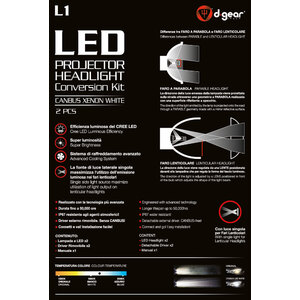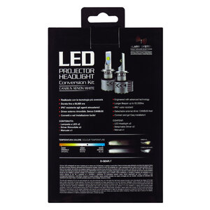 Led Projector Headlight Conversion Kit Xenon White. Con luce singola per fari lenticolari. Efficenza luminosa del Cree Led. Super luminosità. Sistema di raffreddamento avanzato. La fonte di luce laterale singola massimizza l'utilizzo dell'emissione luminosa nei fari lenticolari. Realizzate con la tecnologia più avanzata. Durata fino a 50,000 ore. IP67 resistente agli agenti atmosferici. Driver esterno rimovibile. Senza Canbus! Installazione semplice. Questa lampadina a LED funziona con la maggior parte dei veicoli senza errori, tuttavia alcuni veicoli possono richiedere di installare il decoder o una resistenza per evitare l'errore di codifica o di lampeggiamento