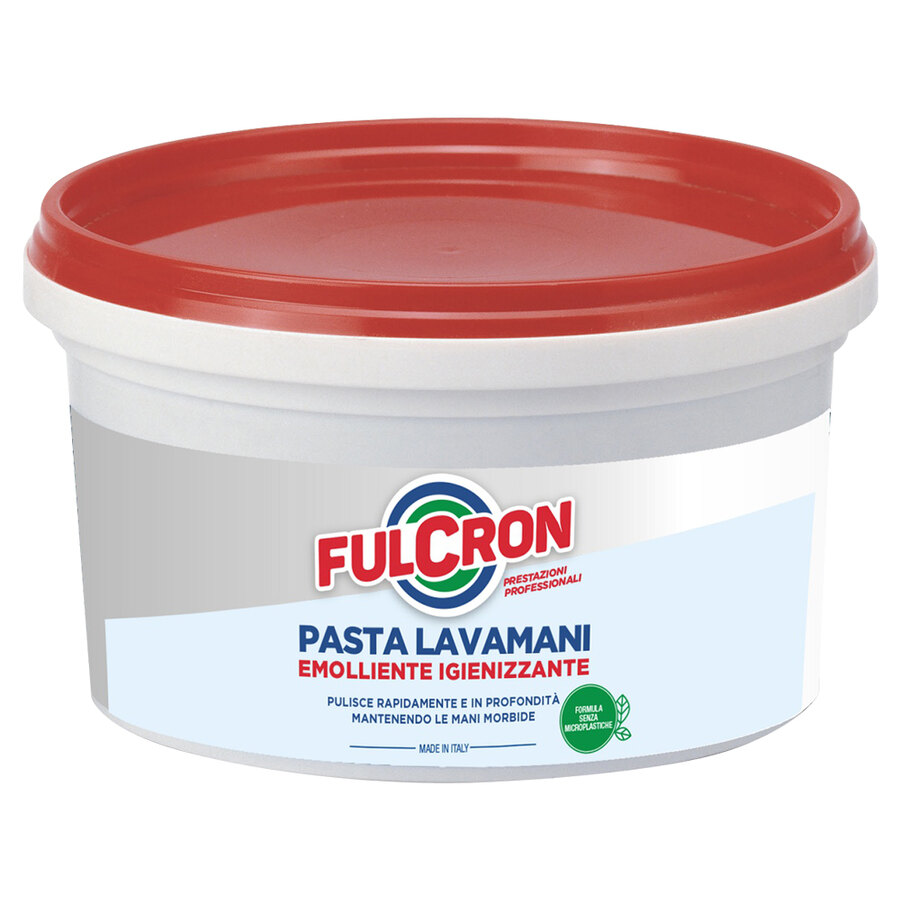 Pasta lavamani. Formula emolliente igienizzante. Prodotto per uso industriale. Particolarmente indicato per la pulizia delle mani con sporchi difficili. Possiede un alto potere pulente e sgrassante, mantenendo allo stesso tempo le mani morbide. Formula priva di microplastiche, conforme alla legge N° 205 del 27/12/2017