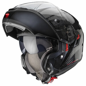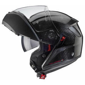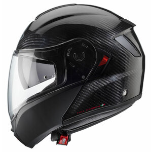 Calotta in Fibra di Carbonio. Ventilazione: due presa d'aria frontali e due estrattori posteriori. Ampia visiera: permette al motociclista di contare su un campo di visione tra i più estesi della sua categoria 82° (definito "Panoramic ultra-wide visor"). Equipaggiato di serie con la lente antiappannante Pinlock Max Vision ed è dotato di visiera parasole integrata, facile da manovrare anche indossando guanti. Interni completamente estraibili e lavabili realizzati con i migliori tessuti ad alta traspirazione e trattati Sanitized. Le guance hanno un profilo che consente di indossare occhiali con estrema facilità. Doppia omologazione P/J avendo superato sia i test previsti dalla normativa ECE 22.06 per i caschi integrali (P) che quelli in configurazione jet (J), con mentoniera aperta