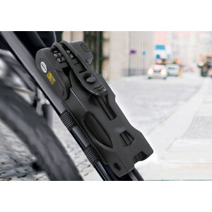 Lucchetto pieghevole, con combinazione. Con staffa di fissaggio da montante da usare quando non in uso. Kit di fissaggio incluso per diversi metodi di installazione