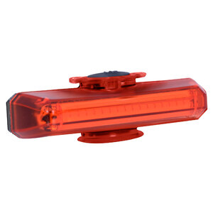 Luce posteriore 50 lumen. Batteria agli ioni di litio ricaricabile tramite USB. LED chip a bordo. Montaggio al reggisella integrato. Cavo micro USB e 2 cinghie di gomma incluse