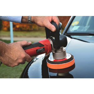 Lucidatrice orbitale pensata per la cura della carrozzeria auto, ideale per appassionati di detailing e professionisti. È adatta per applicare prodotti per la lucidatura e rimuovere micrograffi dalla vernice dell'auto. Potenza: 800W. Tensione: 230-240 V/50Hz. Velocità variabile: da 2000 a 6400 giri/min. Disco con attacco a strappo (velcro): diam. 150mm. Cavo di alimentazione: 1,8 metri. Impugnatura superiore: per una presa comoda. Accessori inclusi: 1 pad in spugna arancione (alta densità) per la lucidatura; 1 pad in spugna blu (bassa densità) per la finitura