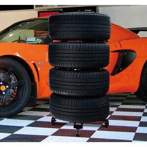 Carrello porta cerchi e pneumatici con supporto ad asta. Salvaspazio, ottima soluzione per lo stoccaggio stagionale. Evita la deformazione degli pneumatici. Per cerchi, pneumatici o ruote complete. Montaggio e smontaggio rapidi. Con freno ruota. Portata: 4 ruote complete da 18/19" (max Ø 620 mm), larghezza max 285 mm, peso max 100 kg