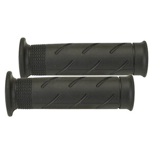 Coppia manopole in gomma termoplastica. Lunghezza: 120mm. Estremità: aperta. Diametro Manubrio/Tubo gas: 22/26mm. Scanalature per filo di ferro : 1 cava. Diametro flangia : 46mm. Diametro impugnatura Manopola montata: 32mm. Impiego: On-road, scooter