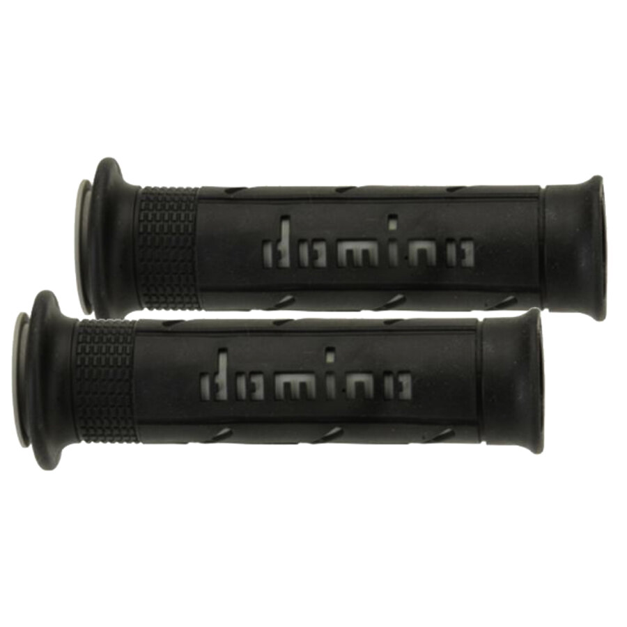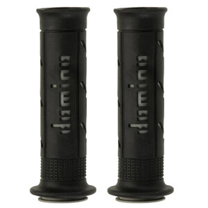Coppia manopole in gomma termoplastica bicomponente con finitura liscia Soft. Lunghezza: 120mm/125mm. Estremità: aperta. Diametro Manubrio/Tubo gas: 22/26mm. Scanalature per filo di ferro: 2 cave. Diametro flangia: 43mm. Diametro impugnatura manopola montata: 31mm Impiego: On-road, scooter