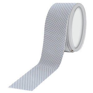 Nastro adesivo riflettente multiuso. Specifico per uso esterno e per applicazioni su superfici rigide. Idoneo per segnaletica stradale, utilizzo generico. Prodotto non conforme alla normativa ECE 104