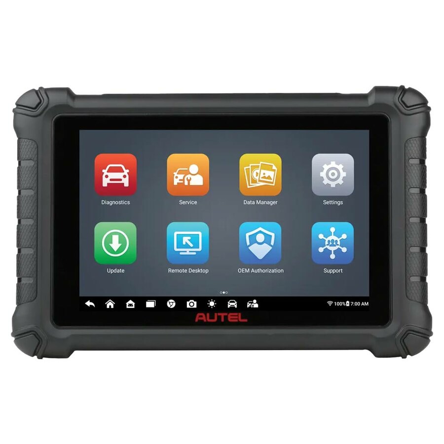 Touchscreen da 8", scanner per tutti i sistemi e un tablet di servizio. E' in grado di leggere e cancellare codici, visualizzare il fermo immagine e, visualizzare e rappresentare graficamente i dati in tempo reale ed eseguire test attivi bidirezionali e funzioni speciali. E' anche un tablet di servizio completo con oltre 40 attività di assistenza e manutenzione, tra cui spurgo dei freni, ripristino delle spie dell'olio e di servizio, registrazione della batteria, rigenerazione del DPF e ripristino del freno di stazionamento elettronico e dell'angolo di sterzata. Funziona su Android 11 ed è alimentato da un processore da 1,8 GHZ, 7 ore di autonomia continua. Compatibile con veicoli statunitensi, asiatici ed europei, dal 1996 in poi. Connettività: Wi-Fi, mini USB 2.0, micro Sd card. Batteria: 7700mAh 3,7 V lithium.