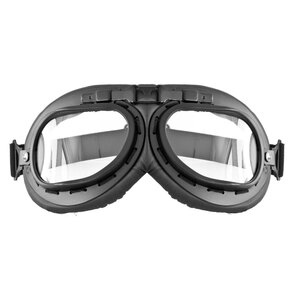Classica maschera vintage per moto rivestita in pelle nera, tipica dei Bikers americani. Le lenti, antiurto e antigraffio, sono realizzate in policarbonato da 2,4mm di spessore, sono decentrate e 100% UV Protection. L'elastico, nero per rendere il prodotto ancora più dedicato ai veri motociclisti, è regolabile in lunghezza e quindi adattabile a tutti i caschi jet vintage e open face, la forma più contenuta lo rende ottimale anche per i caschi più piccoli. Lenti trasparenti, montatura nera