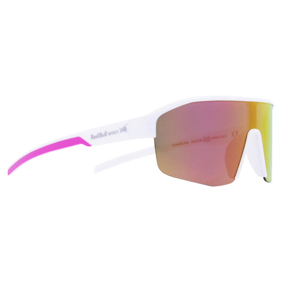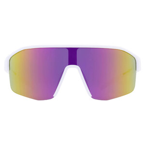 Occhiali da sole. Ampio campo visivo. In parte con telaio gommato antiscivolo. Fronte e aste: Bianco lucido. Lente: Blu con giallo rosa; CAT3