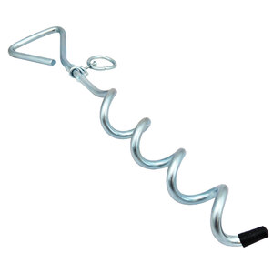 Picchetto di ancoraggio per cani. Crea uno spazio esterno sicura per il vostro cane. Ideale per legare il cane durante gli stop di un viaggio in auto, in campeggio, zone adibite a pic-nic o giardini... Asta per cani orientabile di 360°. Arricchito da una pratica impugnatura. Multi-funzione: facilita anche il montaggio delle tende da campeggio o giardinaggio