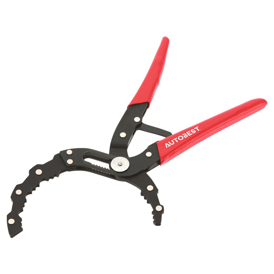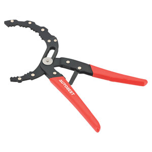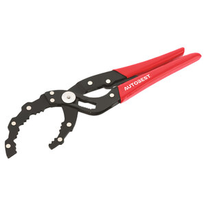 Pinza autoregolante per filtri olio. Consente di rimuovere facilmente le cartucce filtro olio con un diametro da 60 a 120mm. Il suo design sottile la rende ideale per l'uso in aree di difficile accesso. Capacità: diam. da 60 a 120mm. Autoregolante. Impugnatura rivestita