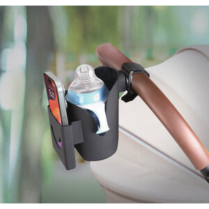 Portabicchiere da passeggino con supporto smartphone. Tieni la tua bevanda e il tuo telefono a portata di mano. Adatto per il montaggio su aste di orientamento sia orizzontale che verticale. Compatibile con la maggior parte dei passeggini, carrozzine, sedie a rotelle e deambulatori. Si fissa con il velcro. Diametro portabicchieri 9cm. Dimensioni max smartphone compatibile: spessore 11,5 mm; larghezza 80mm