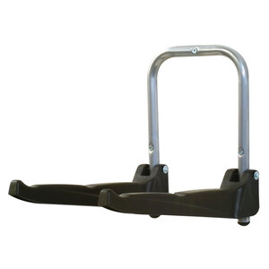 Portabici da parete, ideale per riporre fino a 3 bici o sci e snowboard. Fornito di tasselli per fissaggio al muro, ha una portata massima di 45kg. Materiale: acciaio. Distanza bracci per appoggio bici: 27cm. E-Bike compatibile. Adatto a telai in carbonio
