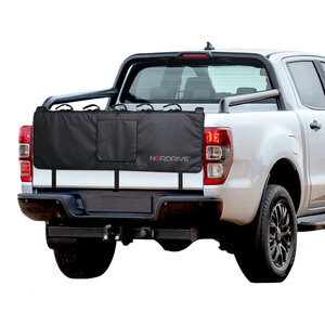 Portabici da portellone posteriore per pick-up. Permette il trasporto in sicurezza fino a 5 bici, proteggendo bici e portellone da graffi e ammaccature. Installazione facile e rapida grazie alle 3 cinghie a tripla cucitura integrate. 5 cinghietti regolabili, rivestiti e imbottiti proteggono delicatamente superfici verniciate e telai in fibra di carbonio, di qualsiasi forma e dimensione. 5 culle integrate per 5 biciclette, anche e-bike che abbinate a ganci metallici ammortizzano mantenendo stabili e protette le biciclette durante il trasporto. Struttura a doppio strato: all'interno materiale soffice e delicato per una protezione massima del veicolo, all'esterno materiale laminato specifico per outdoor, resistente ad acqua e abrasioni. Finestra arrotolabile che permette l'accesso al maniglione e l'utilizzo della telecamera posteriore quando presente. Tasche portaoggetti a doppia chiusura con zip. Occhielli in metallo integrati per l'utilizzo di cavi antifurto