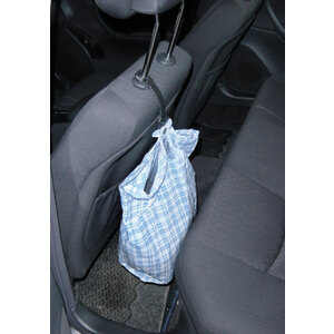 Porta bottiglie e porta sacchetti per auto. si applica all'asta poggia testa. Universale