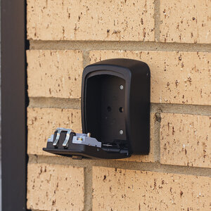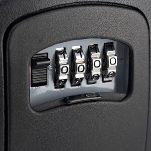Mini box perfetto per custodire in sicurezza chiavi o piccoli oggetti di valore. La porta a battente protegge la serratura a combinazione dalle intemperie e da sguardi indiscreti. Per una maggiore sicurezza, montare su una parete interna o su un'area esterna protetta. Robusto corpo in lega di alluminio con sportello scorrevole. Codice a 4 cifre resettabile. Si monta a parete con raccordi a vite. Dimensioni esterne: 87x120x40mm. Dimensioni interne: 63x91x30mm