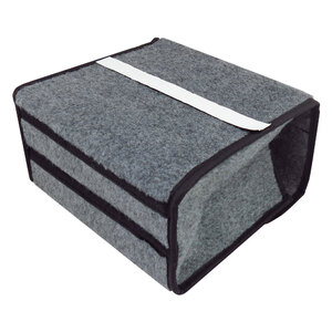 Organizer per bagagliaio, pieghevole, in feltro morbido. Comodo per riporre attrezzi, gadget e molto altro. Facile da trasportare con la comoda maniglia. Il design con coperchio evita che la polvere possa penetrare. Il velcro nella parte inferiore permette di fissarlo nella posizione desiderata. Si attacca a qualsiasi superficie soffice grazie al nastro in velcro