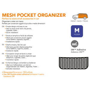 Organizer a rete con tasca. P erfetto per conservare oggetti di piccole e medie dimensioni. Adesivo 3M. Struttura semplice e facile da utilizzare. Ideale per conservare piccoli oggetti come telefoni, sigarette, biglietti... Installazione rapida