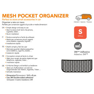 Organizer a rete con tasca. P erfetto per conservare oggetti di piccole e medie dimensioni. Adesivo 3M. Struttura semplice e facile da utilizzare. Ideale per conservare piccoli oggetti come telefoni, sigarette, biglietti... Installazione rapida