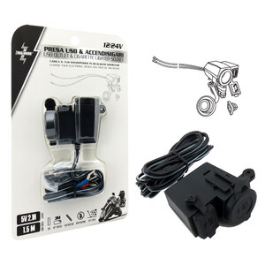 Presa USB doppia con cavo. Uscita ACC/USB antipolvere. Facilmente integrabile nel cruscotto o baule. Ideale se usata anche come presa di emergenza temporanea. Fusibile integrato per proteggere i vostri dispositivi. Doppia porta USB per caricare due dispositivi simultaneamente. Uscita 5V 2.1A. Dimensioni 48xdiam.38mm Lunghezza interna 40mm Lunghezza del filo 60cm. Tensione elettrica: 12/24V