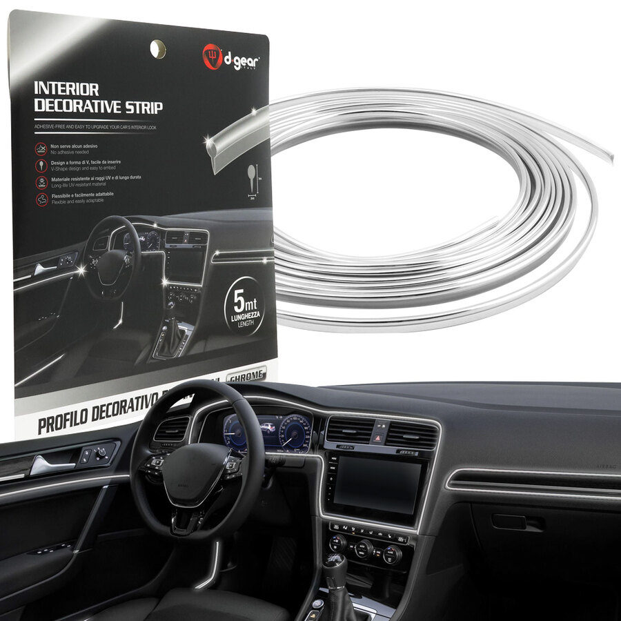 Profilo decorativo per interni auto: flessibile, universale e senza adesivo. Dona un tocco moderno e personalizzato agli interni della tua auto con questo profilo decorativo a forma di "V". Realizzato in materiale flessibile e resistente ai raggi UV, garantisce lunga durata e mantiene i colori nel tempo. Facile da installare, non richiede adesivi: si inserisce con una semplice pressione e si adatta perfettamente ai contorni della plancia e di altri elementi interni. Compatibile con la maggior parte dei veicoli, è ideale per chi ama il fai-da-te: può essere tagliato su misura, rimosso e riutilizzato in pochi istanti. Oltre al valore estetico, aiuta a prevenire l'accumulo di polvere nelle fessure, mantenendo gli interni più puliti. Un dettaglio semplice, ma di grande effetto