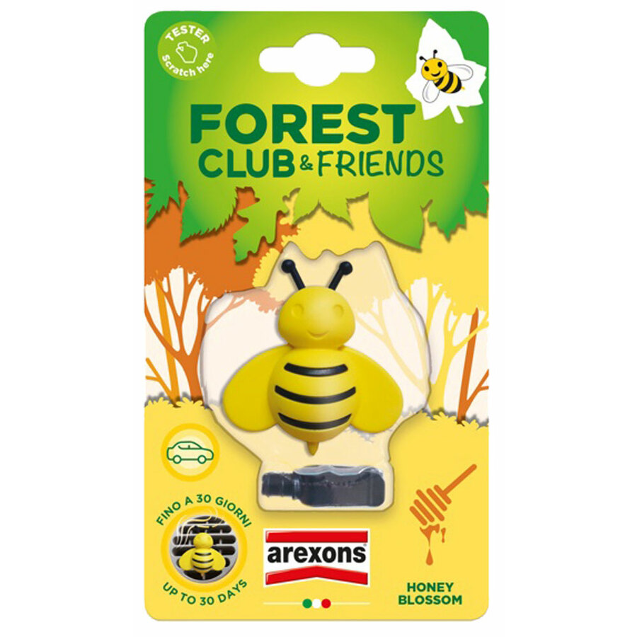 Forest Club è la nuova gamma di profumatori da bocchetta completamente Made in Italy: simpatici e colorati animaletti portano nell'auto fragranze fresche e originali! È realizzata con gomme di ultima generazione resistenti alle temperature, che non si modificano nel tempo e non gocciolano. L'alta qualità delle fragranze ne garantisce la lunga durata (fino a 30 giorni) e l'erogazione graduale