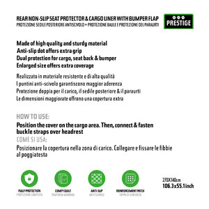 Protezione sedile posteriore antiscivolo + protezione baule e paraurti. Waterproof. Protezione completa. Trapunta morbida. Antiscivolo. Rinforzato. Realizzato in materiale resistente e di alta qualità. I puntini anti-scivolo garantiscono maggior aderenza. Protezione doppia per il carico, il sedile posteriore e il paraurti. Le dimensioni maggiorate offrono una copertura extra