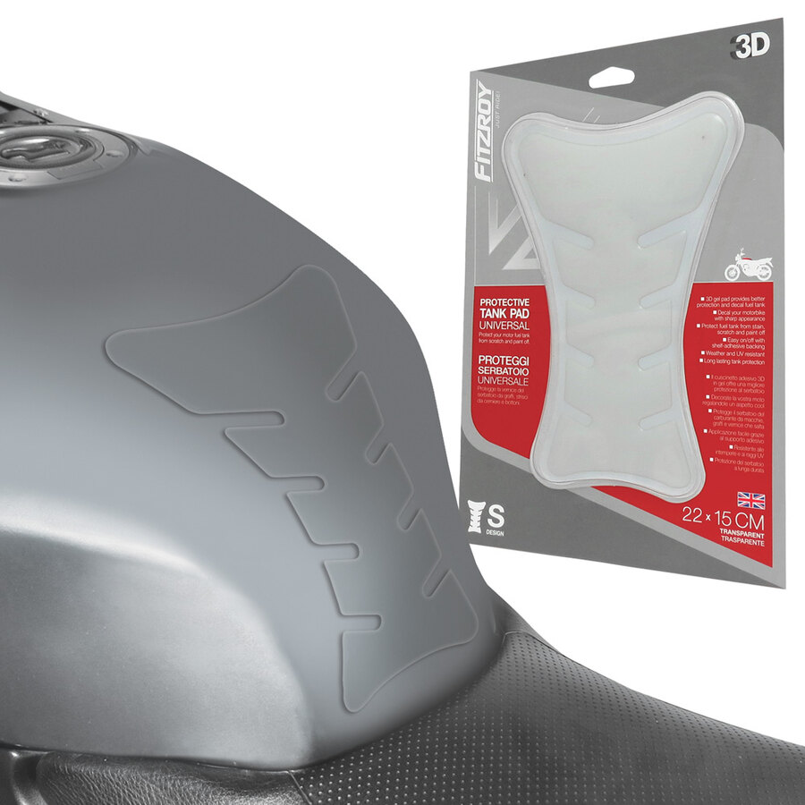 Proteggi serbatoio universale. Protegge la vernice del serbatoio da graffi, strisci da cerniere e bottoni. Il cuscinetto adesivo 3D in gel offre una migliore protezione al serbatoio. Decorate la tua moto regalandole un aspetto cool. Protegge il serbatoio del carburante da macchie, graffi e vernice che salta. Applicazione facile grazie al supporto adesivo. Resistente alle intemperie e ai raggi UV. Protezione del serbatoio a lunga durata