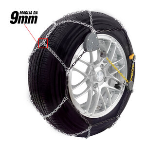 Catena da 9mm di ingombro, battistrada in acciaio. Facili da montare. Tensionamento automatico. Omologazione O-Norm 5117 e CUNA. Att.ne: Le catene vanno sempre montate nelle ruote dell'asse di trazione indicato nel libretto di "Uso e manutenzione" proprio del veicolo. Verificare che le catene siano compatibili con la misura delle gomme dell'asse di trazione. Fare particolare attenzione nei veicoli a trazione integrale o mista, rispettare sempre quanto previsto dalla casa costruttrice