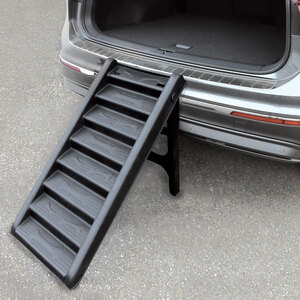 Rampa pieghevole per animali domestici. Permette al vostro animale domestico di salire in modo sicuro in auto, SUV o sul divano.... Leggera. Il design "Fold Flat" permette un facile trasporto e lo rende comodo da riporre. Il design a 8 passi riduce lo sforzo muscolare delle articolazioni, delle anche e della schiena. Con superficie antiscivolo. Non necessità di alcuna installazione. Facile da pulire. Carico massimo supportato: 30kg. Altezza 52cm. Dimesioni piegata: h8xlung.80xlargh.41cm Dimensioni aperta: h52xlungh.68xlargh.41cm
