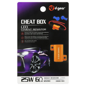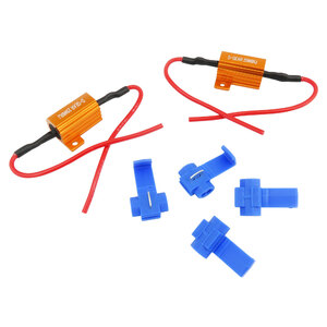 Le resistenze di carico vengono utilizzate per risolvere i problemi di intermittenza iper veloce, mancanza di lampeggio o accensione della spia del cruscotto. La funzione delle resistenze è quella di simulare il carico di corrente o assorbirne maggiormente per imbrogliare il computer di bordo assicurando così la possibilità di installare le lampadine a LED. Ogni LED necessita di una resistenza. Resistenza 12/24V 25W 6 Ohm cementata Risolve il 95% dei problemi causati dall'installazione di prodotti LED a basso assorbimento. Elimina l'iper intermittenza, la mancata intermittenza o l'indicazione nel cruscotto di lampadina bruciata. La confezione contiene 2 resistenze e 4 clips necessari per una corretta installazione. Si consiglia l'installazione su parti metalliche per via del calore prodotto dalla resistenza