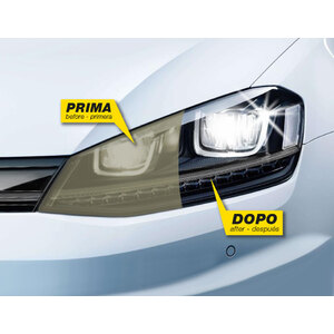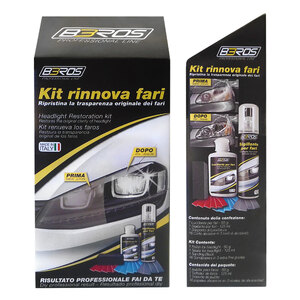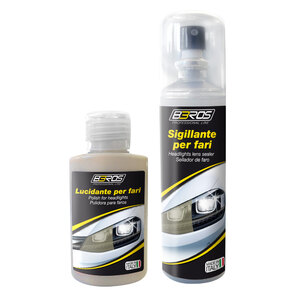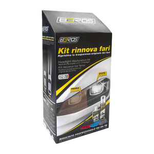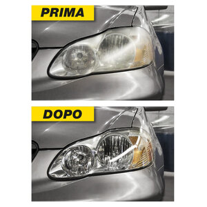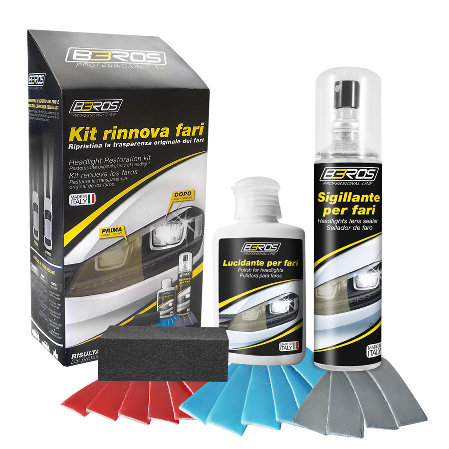 Kit rinnova fari. Ripristina la trasparenza originale dei fari e migliora l'efficacia delle luci. Risultato professionale fai da te. Contenuto della confezione: lucidante per fari (80g), sigillante per fari (125ml), supporto di lucidatura in poliuretano da utilizzare per rimuovere lo sporco depositatosi sui vetri e pulire fari opachi, carte abrasive in tre livelli di abrasività extra fine. Prodotto studiato appositamente per lucidare i fari auto in grado di garantire un risultato professionale a portata di tutti.
