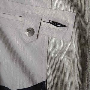 Giacca estiva realizzata in tessuto a rete traforato e cordura. Linee riflettenti su petto, schiena e collo. Include 3 tasche esterne e 2 tasche interne. Vita, braccia e collo regolabili. Doppia cerniera centrale YKK. Tasca posteriore per paraschiena (paraschiena non incluso). Protezioni estraibili "Flexishock" su gomiti e spalle EN1621-1: 2012 certificato CE. Prodotto approvato per moto CE prEN17092-4: 2018 Livello A