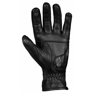 Guanto da donna classico realizzato in pelle di capra. Fodera interna in tessuto leggero. Palmo in pelle doppio strato. Cuciture a diamante sul dorso della mano, sulle dita e sul cinturino in pelle. Piping riflettente sul dorso della mano. Dito indice compatibile touchscreen. Polso elasticizzato regolabile con cinturino in pelle, chiusura con bottone. Omologazione secondo la norma EN 13594: 2015
