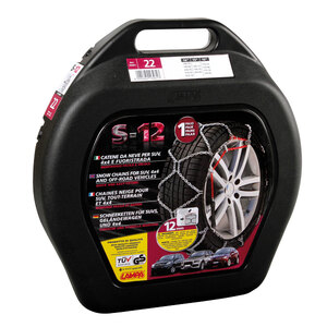 Coppia catene da neve per suv, 4x4, fuoristrada, 12 mm di ingombro interno. Sistema di auto-tensionamento: dopo il montaggio ed il tensionamento manuale, la catena può tendersi ulteriormente in modo automatico evitando ulteriori fermate durante la guida. Ideale per tutti i veicoli con spazio limitato tra pneumatico e parti meccaniche. Doppio rinforzo centrale per una miglior aderenza. Battistrada a rombo. Maglie in acciaio cementato con sezione a "D", utilizzabili da entrambe le parti. Cavo interno flessibile per un montaggio facile. Omologazione ÖNORM V 5117 - EN 16662-1 Att.ne: Le catene vanno sempre montate nelle ruote dell'asse di trazione indicato nel libretto di "Uso e manutenzione" proprio del veicolo. Verificare che le catene siano compatibili con la misura delle gomme dell'asse di trazione. Fare particolare attenzione nei veicoli a trazione integrale o mista, rispettare sempre quanto previsto dalla casa costruttrice