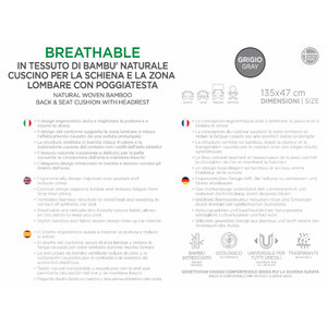 Cuscino per la schiena e la zona lombare, con poggiatesta integrato. In tessuto di Bambù naturale intrecciato. Universale per tutti i veicoli. Eco Friendly. Traspirante. Il design ergonomico aiuta a migliorare la postura e a ridurre lo stress. La struttura ventilata in bambù riduce il calore e la sudorazione causate dal contatto con i sedili dell'auto sintetici. Il tessuto naturale traspirante e delicato per la pelle consente la circolazione dell'aria e mantiene freschi. L'elegante design intrecciato in bambù e tessuto ravviva gli interni dell'auto