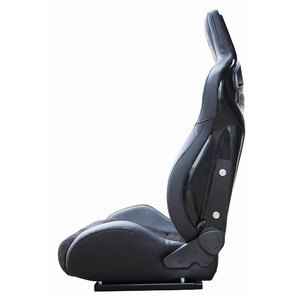 Sedile sportivo reclinabile rivestito in velluto e pelle con riscaldatore e guscio in FRP. Completo di kit slitte universali. Regolazione dello schienale: destra e sinistra. Controllare l'applicabilità sulla vettura prima di effettuare l'acquisto! NB: Non include staffe di fissaggio specifiche auto per auto (vanno acquistate separatamente). Per l'installazione è necessario rivolgersi a personale qualificato