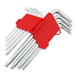 Set chiavi combinate Torx. dimesnioni assortite per un utilizzo versatile. Non possono mancare nel tuo garage. Resistenti e con trattamento anti ruggine. La confezione include 9 pezzi: T50 10mm, T45 8mm, T40 6mm, T30 5mm, T27 4mm, T25 3mm, T20 2,5mm, T15 2mm, T10 1,5mm